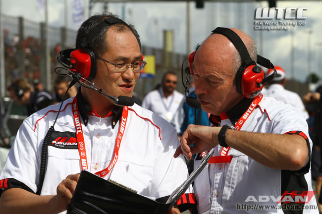 WTCC用タイヤ開発のまとめ役である横浜ゴムの渡辺晋エンジニア(左)。環境性能を向上させた新タイヤも高い性能を発揮した。