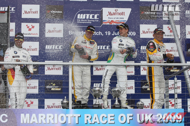 第2レース(第18戦)の表彰台、ポルトガルに続いて勝利をおさめたファルファス選手が歓喜のシャンパンファイト。