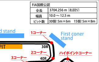少ないなかでパッシングポイントとしては、最終コーナーからの立ち上がりでスリップにつけて、1コーナーで勝負を仕掛けるというパターンが定番になっていますので、予選一発のピークグリップはもちろんのこと、長い最終コーナーでファイナルラップまで安定してトラクションをかけていけるだけの耐久性も、タイヤにとっては重要なポイントとなってきます。
