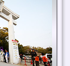 金曜日にはスタートに先立って、唐津神社で恒例のセレモニー。参加者全員が一年の安全を祈願した後に集合写真を撮影、そして多くの市民が参道で声援を送る中、一台ずつ紹介されていった。