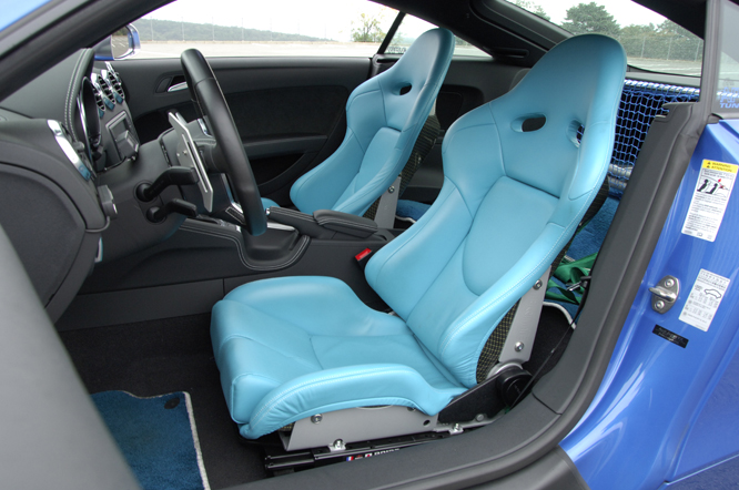ジェイファクトリーが、待ち乗りからサーキットまで、おしゃれに乗りこなすように製作したTTSです。APRのキットを組み込んだエンジンは、ノーマルの270馬力から340馬力へパワーアップされています。