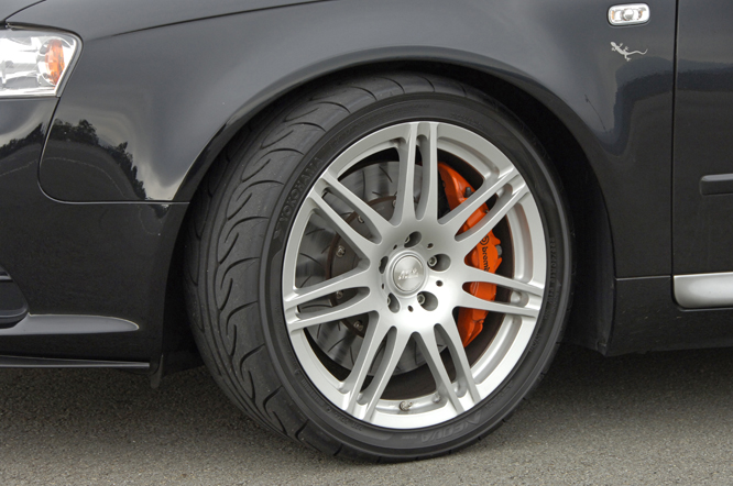 最速アバントを目指して作り上げた一台ですが、ファミリーカーとして普段の足にも使える仕様です。街乗りでの快適性はそのまま、サーキット走行までも楽しめる欲張りなA4です。安全に速くというテーマに「ADVAN NEOVA AD08」は見事にマッチし、オーナー様にもご満足頂いてます。