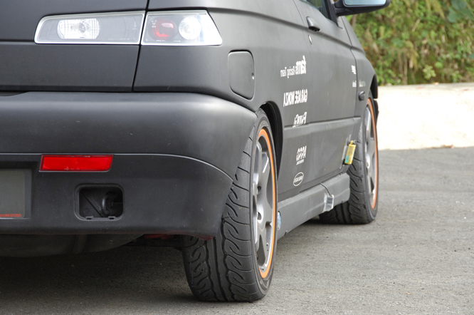 ベース車両のボディカラーは赤でしたが、艶消しブラックに全塗装してあります。ホイールのリムをオレンジに塗装しているので、艶消しブラックの良いアクセントになっております。車自体はサーキット走行をメインとした使用用途で、足回りの剛性強化を中心にアラゴスタの車高調にローター交換程度と基本的なことだけをやってますが、ピーキーになりすぎず誰でも乗りやすいセッティングになっております。当店主催のサーキット走行会でもドライバーの腕が良い事は勿論ですが、2L FF4気筒NAとは思えないタイムを出されております。