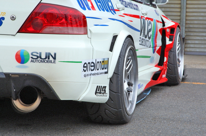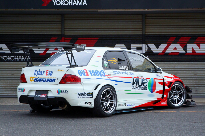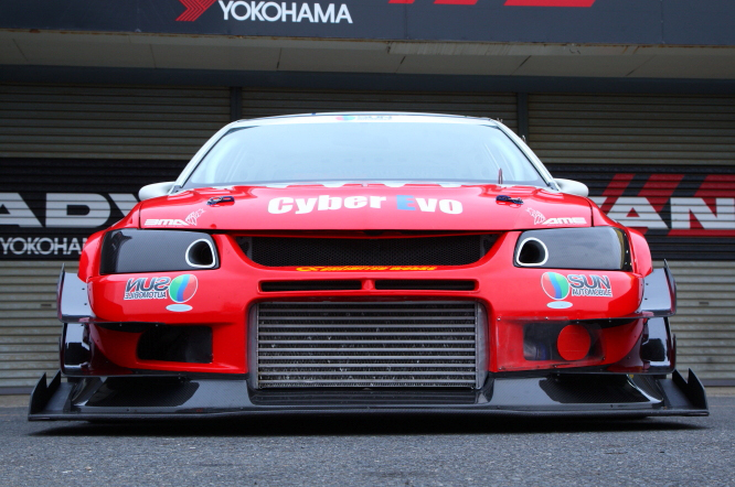 基本的にボディはノーマルです。モノコック自体の変更はしていません。足回りのパーツ交換とエンジンチューンのみでSタイヤを履いて究極のタイムを出す事を目標に製作した車両です。決して非現実的なチューニングはしていません。乗ってもらったドライバーさんには皆さん乗りやすいとおっしゃっていただいています。今後も背伸びせずに出来る範囲で究極を目指していきたいと思っています。コメント:サイバーEVO