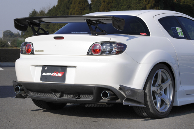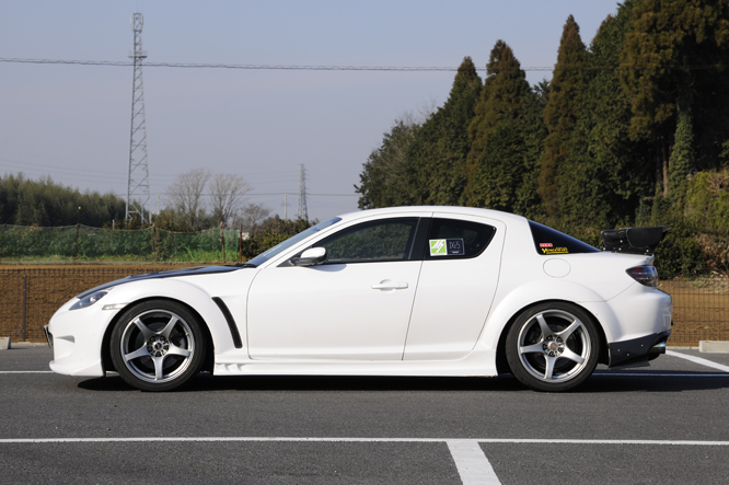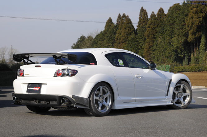 エンジンなどすべてをトータルチューニングし、RX-8の本来のポテンシャルを最大限に引き出しております。また、このデモカーでエイドリアンカップ[車検対応のなんでもありのMore仕様]にも出場し、サーキット走行を楽しめる草レース仕様でありながら街乗りも十分楽しめる使用にしています。