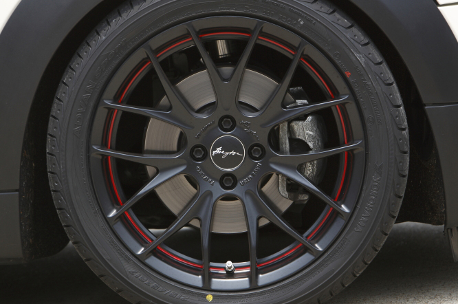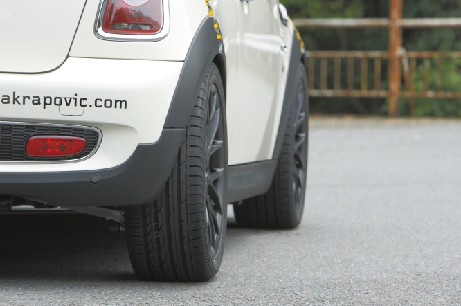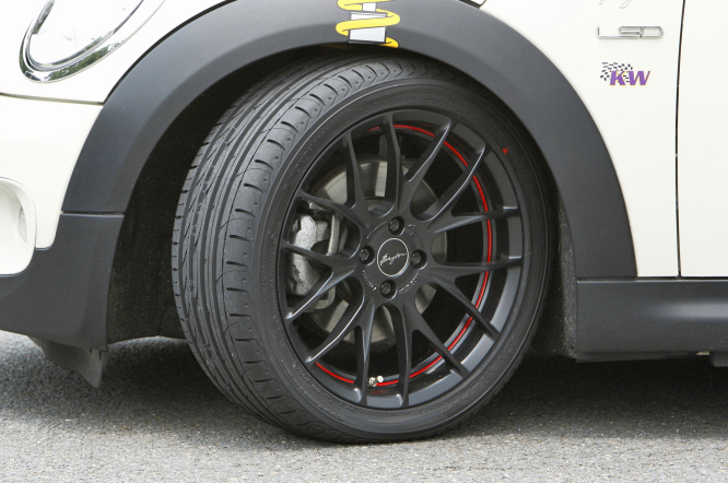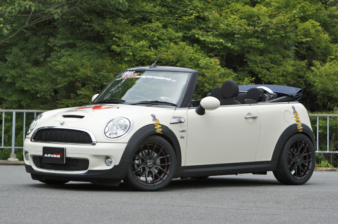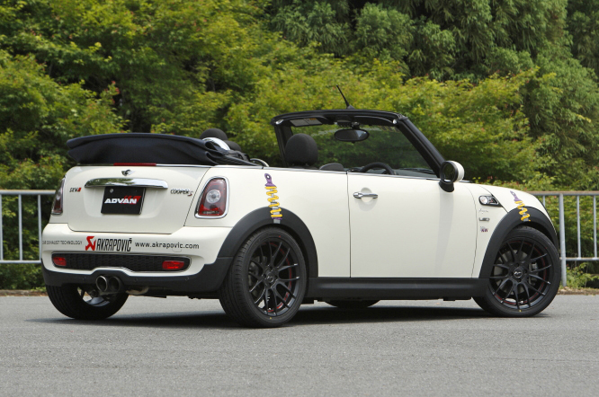 BMW miniのコンパクトである良い部分を更に引き出す為にパワーアップ、軽量化を両立したエキゾーストシステム「AKRAPOVIC」と、CPチューン「SKN」でパワーアップを図り、サスペンションはKWの2way車高調「Version-3」で様々な走行シーンに対応し、待ち乗りからワインディングまで楽しめる仕様です。
