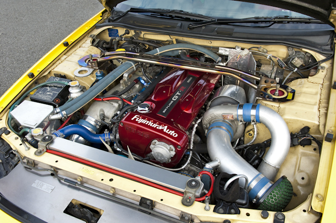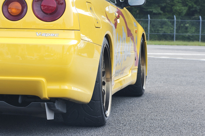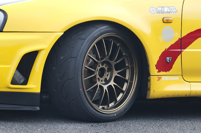 当店は、創業当時より、速く!かっこよく!快適に!を目指しています。ストリートにこだわり、街を快適に走れる状態で、安全にサーキット走行も楽しめる仕様を目指しています!この車両(”きいろボン”)も長年、通勤の足として、サーキットの友として活躍し続けています。エンジンは2.6Lで比較的ターボらしい加速感が気に入ってます。街乗り時はAD08、サーキットはA050で決まりです!