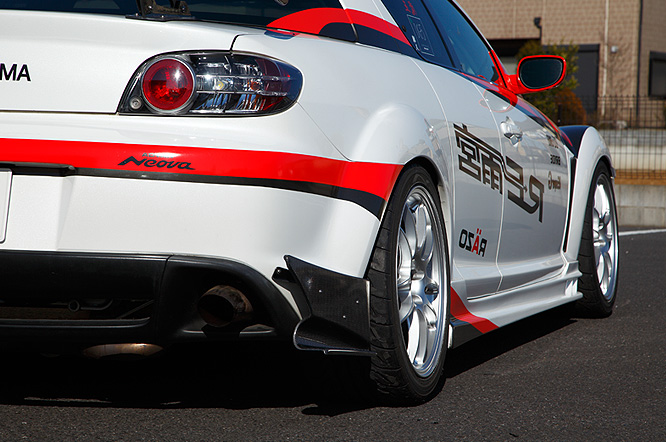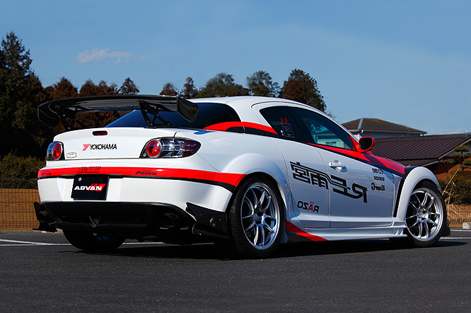 エンジンなどすべてをトータルチューニングし、RX-8の本来のポテンシャルを最大限に引き出しております。また、このデモカーでエイドリアンカップ[車検対応のなんでもありのMore仕様]にも出場し、サーキット走行を楽しめる草レース仕様でありながら街乗りも十分楽しめる使用にしています。