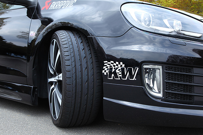 ユーロ車の魅力を最大限に引き出すリーガーチューニングエアロを全身にまとい、KWサスペンションにてローダウン、これだけのローフォルムにも関わらず乗り心地を追求。給排気はアクラポビッチ&BLITZのコンビで決める。