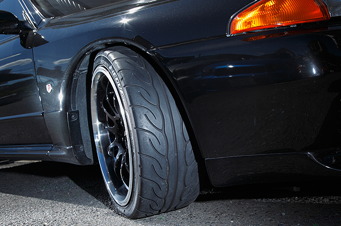 荒 聖治選手の愛車。エンジンはノーマルで吸排気系のみのチューニングとしながら、ブレーキはエンドレス、ミッションはNISMO 6Speed KitとBNR32の本来の性能を生かした仕様。