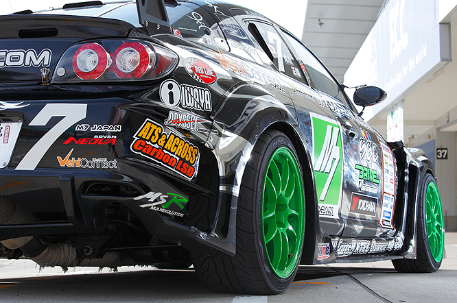 昨年より投入されたRE雨宮のD1マシン。RX-8をベースにT88-34Dでターボ化し、最大馬力は580ps。