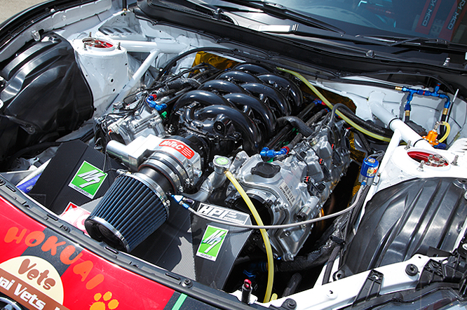 TOYOTAの86に、ドライバーMAX織戸自らも構想、制作に携わった、日本製V8エンジンをドッキングしました戦うドリフトマシーンです。馬力は500馬力オーバー、トルク50Kオーバー、NOS使用時は600馬力オーバー。まだまだ開発途中ですが、サウンドやハンドリングフィールは戦闘力は高いと思います。D1GPでの応援お願い致します。