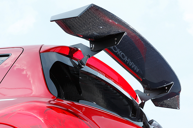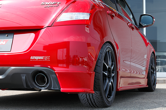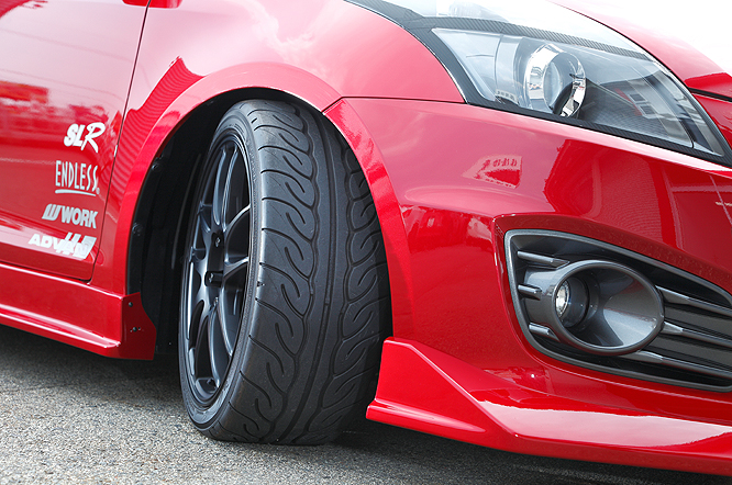 サーキット走行も考慮したストリート仕様。コンパクトスポーツ用にENDLESSと共同開発したサスペンションはストリートを犠牲にすることなくスポーツ走行も可能にしています。エアロパーツに関してはルックスもさることながら機能としてのデザインも追求し空力によるアドバンテージにも優れています。