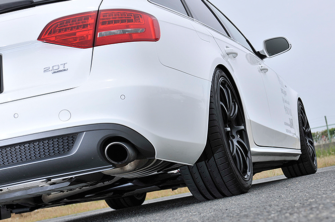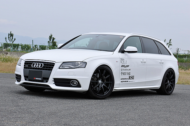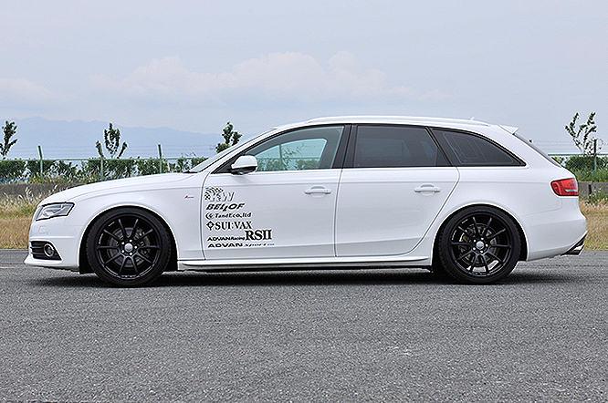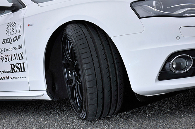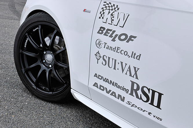 A4 AvantにADVAN Racing RSⅡとADVAN Sport V105を組み合わせ、サスペンションはKWのVERSION-3 COILOVER SUSPENSION KITとシンプルな仕様です。