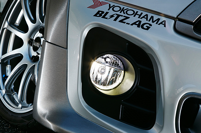 フォグランプには、高輝度LEDの光をバルブ先端の“ディフュージョンミラ ー”に反射させ光を増大し、ランプリフレクターより理想的な照射光を実現したLED FOG コンバージョンバルブ シリウス ボールド・レイ キャンセラーパッケージを装着。輸入車特有のパルス電源に対応し、イグニッションON時に発生するバルブ点滅制御機能や球切れ警告灯の誤点灯を回避しています。ヘッドライトには、輝白色の6500ケルビンを維持しながら2940ルーメン、当社従来品と比較し27%アップという明るさを実現したOptimal エナジーグレード D1S 6500kを装着することで、シャープな顔つきと快適なナイトドライブを実現しています。