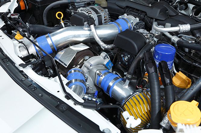 パワー感と扱い易さを兼ね備え、ユーザー目線で仕上げた車検対応ターボ仕様の86です。GReddyターボキットT518Zにより、約280psのパワーを発揮しながらもストリートでの扱いやすさを考慮。ピーキーにはならず、身構えることなく楽しめるような仕様になっており、そのままサーキットも楽しめます。パワー感ある走りを十分に発揮できるように、足廻りや冷却パーツも装着され、すべてユーザーが購入できる量産品で構成。誰でも手が届く完全合法チューンドマシンです。
