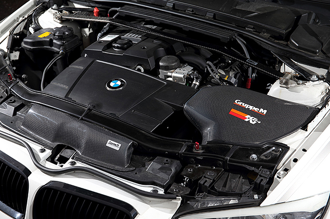 320クーペLCIのMT車です。エクステリアにカーボンパーツを多用しクーペらしいスタイルを作りつつ、タワーバーやブレーキ、吸気など強化しスポーティーかつ実用的で走って楽しい車を目指しています。