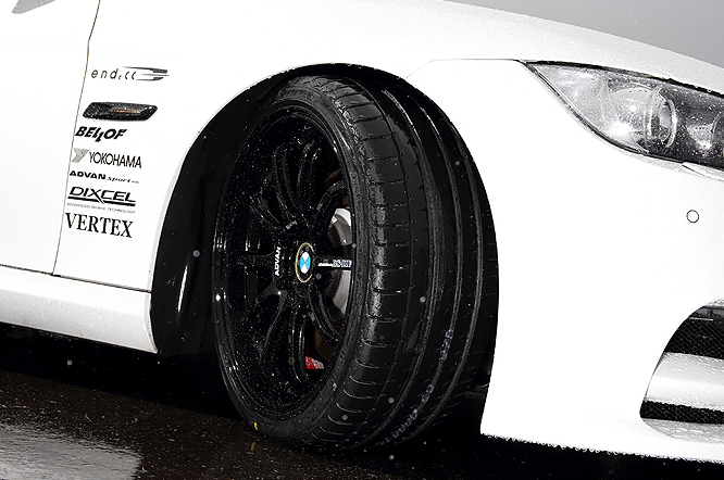 また、フロントバンパーは株式会社 ティー・アンド・イー様の協力により、M3用バンパーのサイド部分などをE93に合うよう作り直し、装着してもらっています。