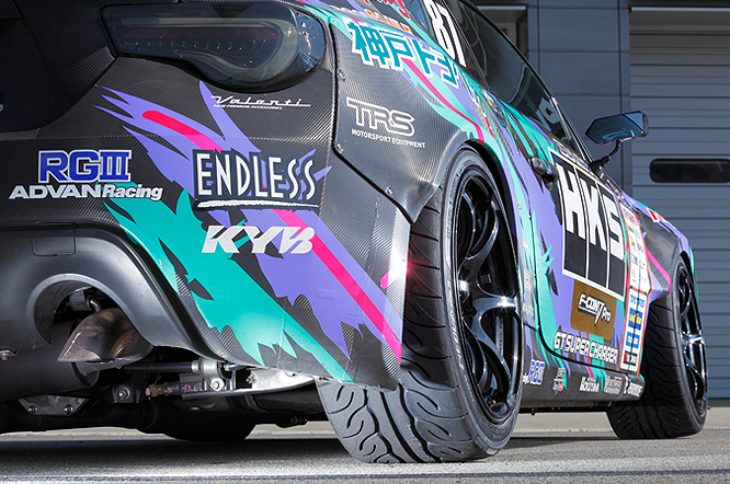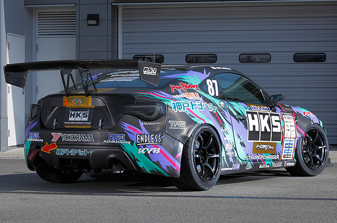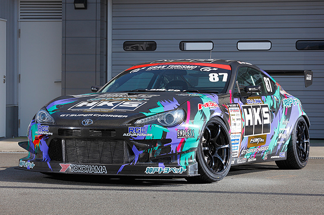 2012年より7年ぶりにD1に復活し3年目となるマシン。TOYOTA 86のチューニングパーツの開発をしながら進化を続けている。HKS独自の機構を持つGT SUPERCHARGERはじめ、今後リリースを予定している試作パーツで580psを発生。