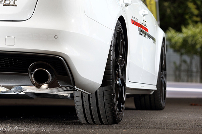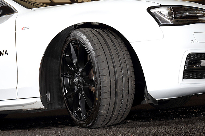 足回りをメインにチューニングする方向性でまとめてあります。ホイールはOZのフォーミューラーHLT19インチで新作カラーマットブラックが足元を引き締めます。タイヤはヨコハマのADVAN sport V105を装着。そして車高を少し下げてスタイルアップ、スポーティーになるKWのstreet comfortを選択。Audi車のネガであるブレーキダストの多さを解消する為に、m+クリーンパッドを選択。ダストは純正比で大幅に減ります。ブレーキタッチも主に街乗りシーンを想定しコンフォート仕様の仕上がりです。