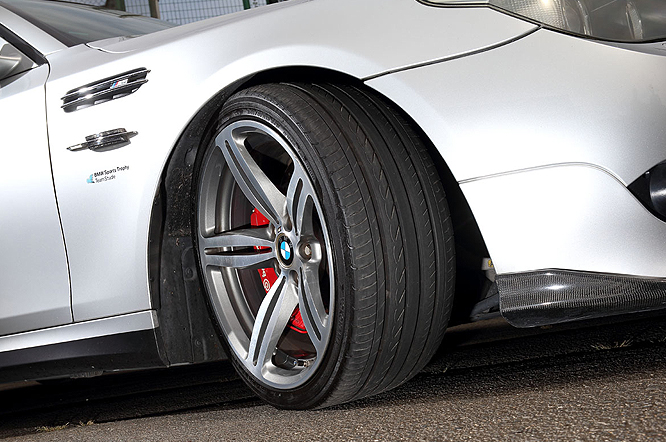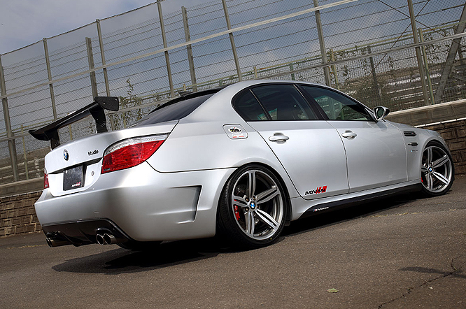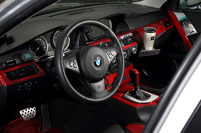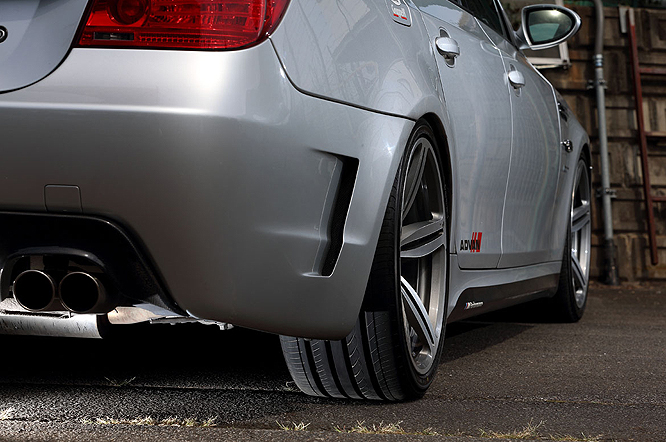 E60のエッジの効いたデザインが好きなので、あえてシルバーをベースに外装はカーボンの黒と、内装はレカロやカーボンパネルでアカを差し色に。リアはワンオフバンパーでダクトを追加し、ボリュームを持たせました。