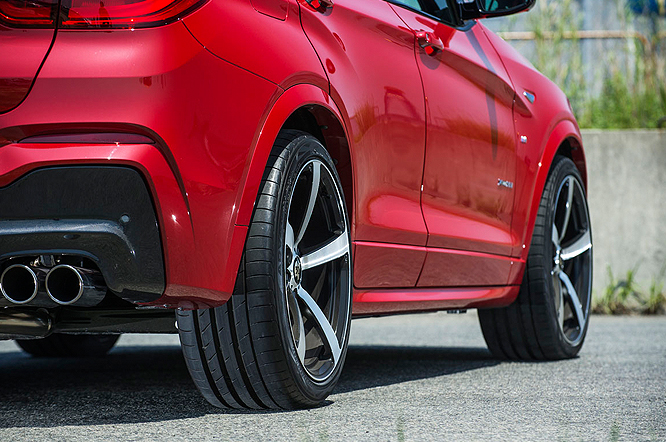 3DDesign 初のSAVモデルへのチューニングプログラムをフルに組み込んだ一台。 スポーティーな中にボリューム感のあるエアロパーツと1サイズ大径に見えるホイールでまとめたエクステリア、特に4テールマフラーとディフューザーで仕上げたリアセクションは高質感とインパクトをX4に与えます。