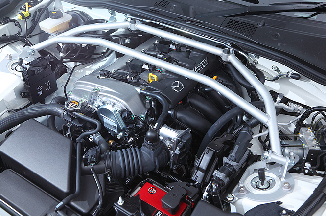 4代目ロードスターとなるND型では、オープンスポーツとしての魅力だけではなく、欧州車風の高級感が漂うスタイリングも追求。NAならではの心地良さをさらに磨き上げるため、吸排気効率の向上やコンピュータチューンは必要不可欠。足回りは、ノーマルでもトータルバランスが非常に高いため、まずは腰高感を解消するチューニングから取り組む予定です。