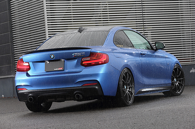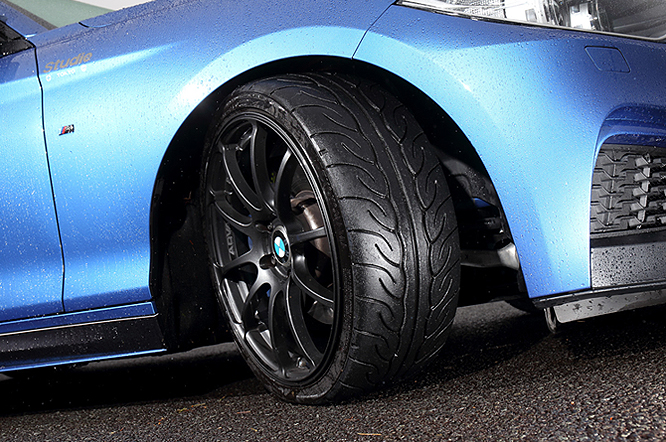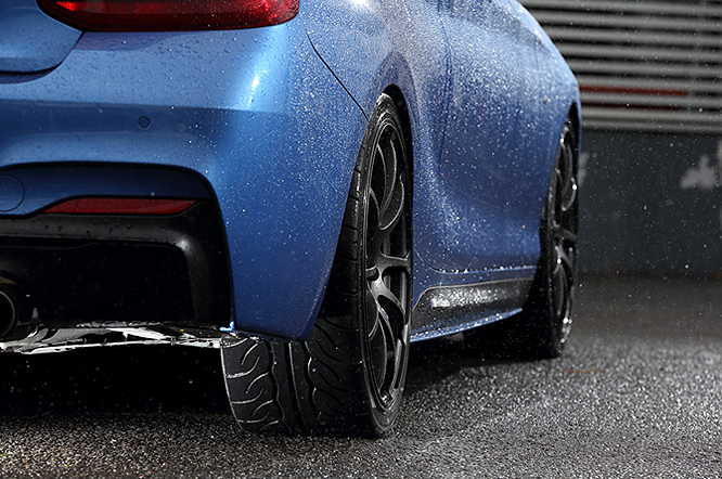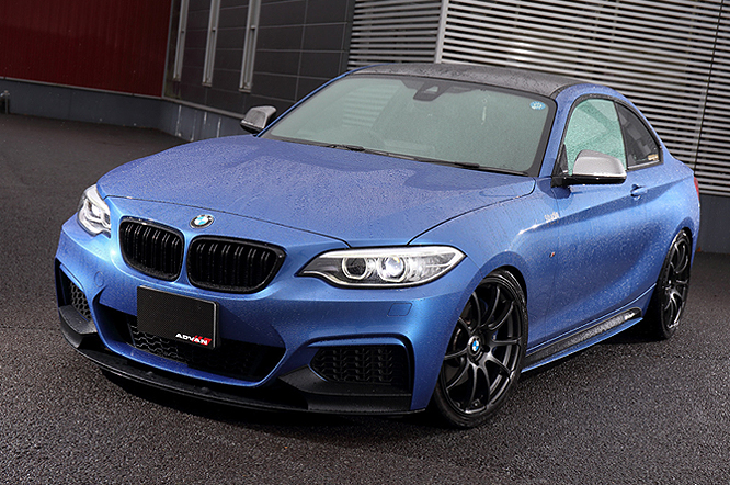 軽量ボディに3リッターターボエンジンを搭載したM235i 。 走りを意識したモデルには、足回りを中心としたライトなチューニングを施しており、特に乗り心地とグリップが高次元でバランス。 ADVAN Racing RZ ダークガンメタリックのホイールにADVAN NEOVA AD08Rをセット。