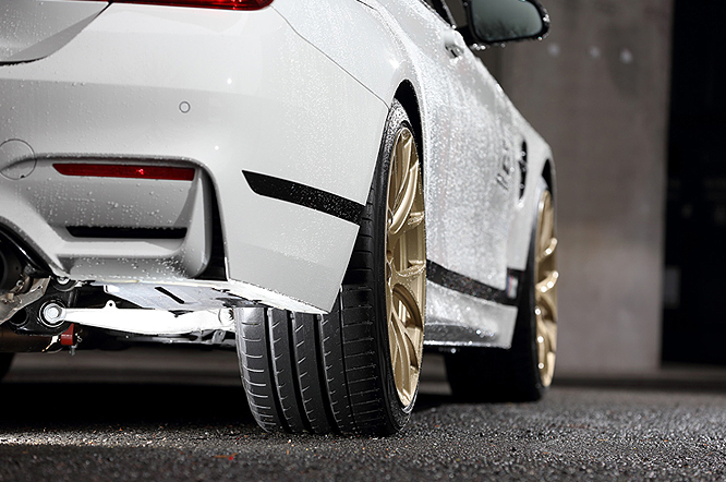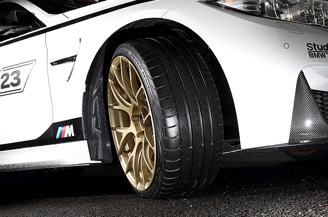 BMW M4 DTM CHAMPION EDITIONは、BMW M4をドライブしたマルコ・ヴィットマン選手の年間ドライバーズチャンピオン獲得を祝う記念モデル。世界で23台だけの特別な限定車だ。日本には5台のみしか輸入されなかった超稀少車を手にした幸運なオーナーは、BBS V7にADVAN Sport V105を装着して、希少性に見合ったプレミアムな足元を選択。