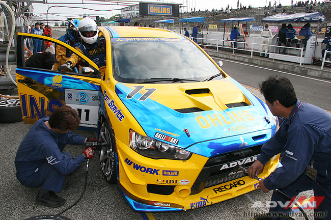 3回ストップ作戦を敢行した「オーリンズ・ランサーEVO X」が"ピット作業勝負"も制して今季初優勝を飾った。