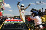 サインガードで身を乗り出してチームスタッフが出迎える中でザナルディ選手がポール・トゥ・ウィン、ポルテイロ選手が2位でチェッカーを受けてBMW