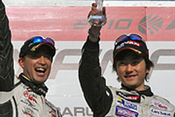 激しい3位争いを制したのは「HASEMI SPORT TOMICA Z」。こちらは、この岡山国際サーキットではライフ的に厳しくなる左側の前後2本を交換する作戦でピットタイムを抑え、後半のバトルロイヤルを制しての表彰台ゲットだった。