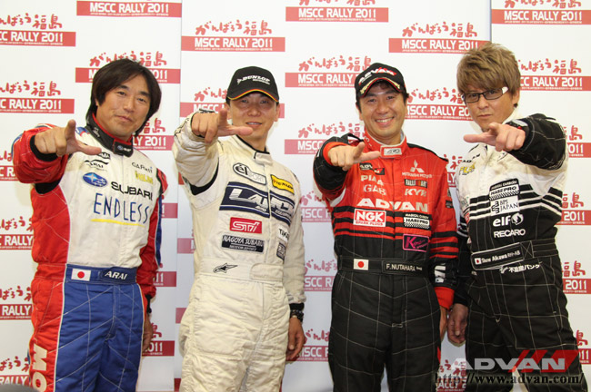 新井敏弘選手(左)や哀川翔選手(右)も参戦、被災地復興支援への思いをそれぞれに抱いて戦いに選手たちは臨んだ。