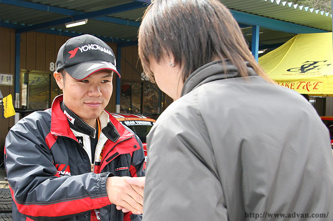ピットウォークで行列を作ったファンにサインをする吉岡稔記。次期マシン、SC430が次戦から投入されるのか気になるところ。