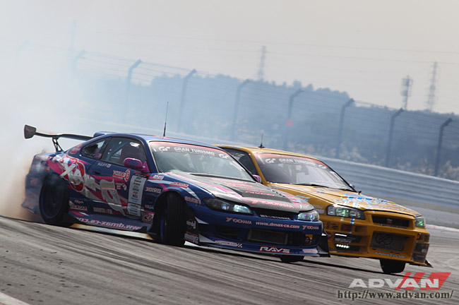 追走トーナメント、シルビアの中村直樹選手はスカイラインの手塚強選手と対戦。アグレッシブな走りで健闘を見せた。