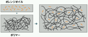 ゴムというのは鎖状のものが絡み合っている状態になっています。オレンジオイルを入れると、これがゴムとゴムの間に入り込んで、ゴムの動きを"しなやか"にしてくれます。