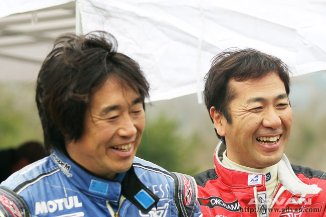 ADVANを知り尽くした奴田原文雄選手(右)と、スバルを知り尽くした新井敏弘選手(左)。両選手の経験がタイヤと車を進化させる。