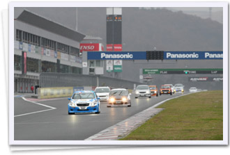 時間は9時を過ぎた。今年より富士スピードウェイではじまったN2規定に準拠したワンメイク仕様のカローラアクシオGTレースカーが先導し、ADVANカローラパレードがいよいよスタートする。
