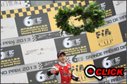 In first place LYNN marked times in the 2'12" zone and kept a gap of 2 seconds. Second place DA COSTA was followed by third place MARCIELLO, and perhaps MARCIELLO was pursuing too hard because during the 10th lap at the final corner, he hit the tire barrier, took a lot of damage, and had to retire from the race.