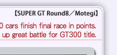 The championship showdown, the eighth and final round of Super GT series, was held at Twin Ring Motegi which is a typical gstop & goh circuit. Yokohama Tire headed to this race to defend the status of the GT300 champion's tire supplier, with GSR Hatsune Miku BMW in second in the point standings, eight points behind the leader, and Okinawa-Imp SLS in fourth, 14 points behind.