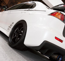 (株)Kansaiサービス。チューニング業界を常に最先端の技術で牽引するこのショップは、誰もが手軽に楽しめる車を製作することでも有名だ。きっちりと仕上げられた数々のデモカーは、その高いパフォーマンスとは裏腹に、すべての車両が公道を走ることができる。つまりそのままの状態で車検が通るナンバー付きの車なのだ。この合法であり、かつ誰もが楽しめる車を作るという確固たるポリシーは、階ansaiサービスの変わらないスタイルである。