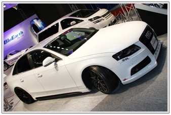 この「BluEarth-A」を装着して展示したのは、XasがプロデュースしたアウディA4。開発中のサイズとなる255/35R19