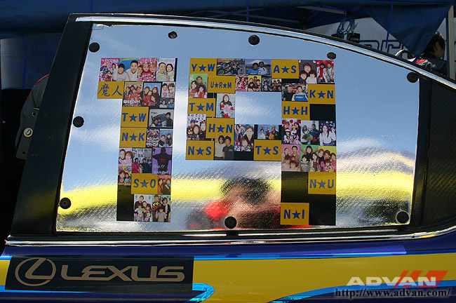 「ウェッズスポーツIS350」のドアには、ファンクラブ会員による"プリクラスポンサー"から寄せられたプリクラが貼られている。