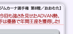 また、改造無制限のDクラスはADVANユーザー同士のチャンピオン争いとなっており、年間を通じてのADVANの優位性はすでに揺るぎないものとなっている。