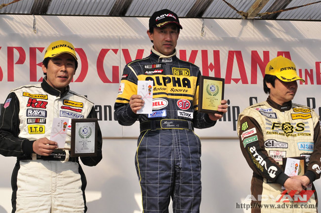 こちらもニューモデル・エボリューション]投入緒戦で堂々の優勝を飾った、N4クラスの岡野博史選手(中央)。