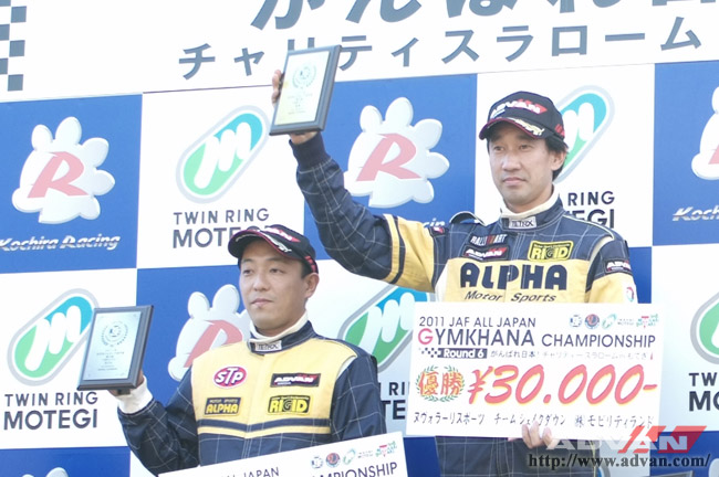 PN3クラスはリジット勢のランサー・エボ]がワン・ツー・フィニッシュ。優勝の岡野博史選手(右)と、準優勝の新井範正選手(左)。