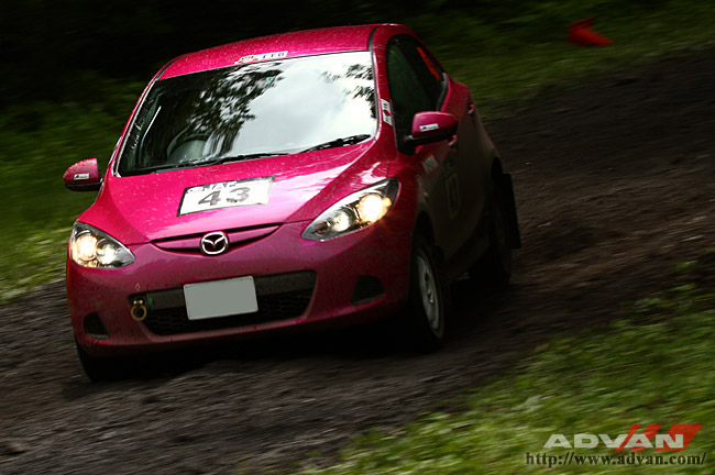 いとうりな選手はピンクにペイントされたデミオで参戦。可愛らしい色とは対照的に、その走りはなかなかアグレッシブ。