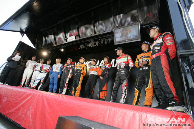 YOKOHAMA特設ステージには、ドライバーが勢ぞろい。ファンの前で戦いに向けた意気込みなどを力強く語った。