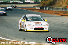 「2002年の6月にレース仕様のEG6・シビックでサーキットを初めて走りました。その時の印象は『すごく楽しい』。で、2回目に行ったら、今度はエンジンを壊しちゃって。でも、タイム的には初めてにしては良かったと言われました。それで山田選手に『サーキットに行って走ったんですよ』って言ったら、だんだんとレースに出場しろ、というような話になってきて。